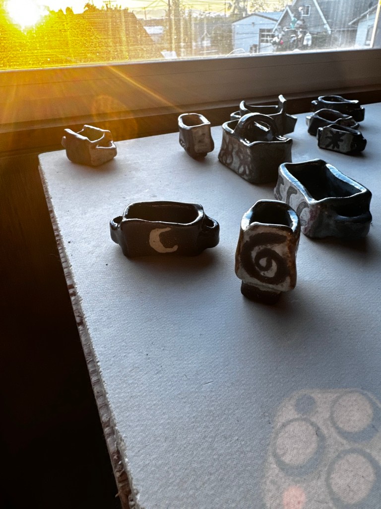 So ceramics is mostly bowls and cups. Art with functional qualities. How differently do we eat when we are using bowls and cups from someone we love instead of a stranger? Will our meals become more locally sourced and more shared?