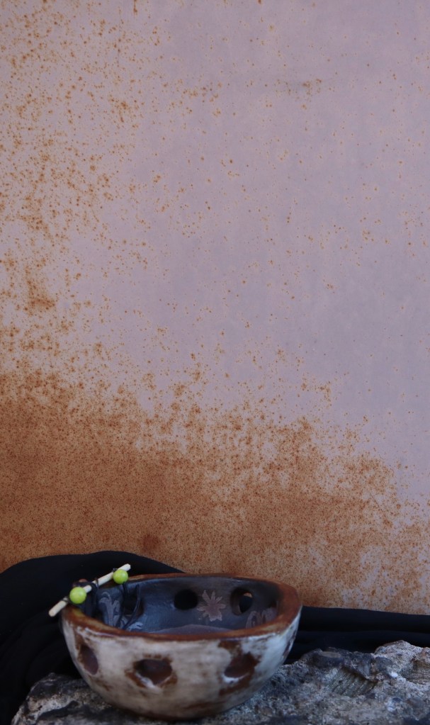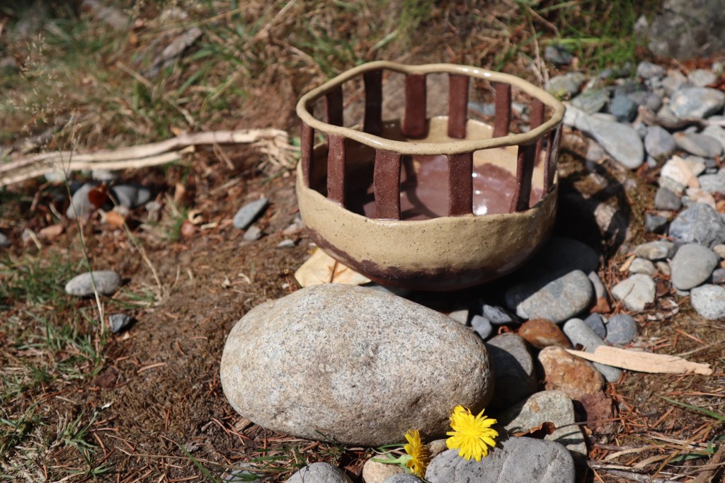 When looking around at unique ways of making pottery I noticed some people will create intention space to stave on clay material. So this was my effort to make a larger bowl with height but less clay. Perfect for a salad bowl to impress the guest. The empty space leaves room for feelings of being humble and gratitude. The harmony of the small pieces of clay joining together to create a hair more space is a reminder that when we stand together we are taller, stronger and wiser.
